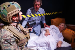 An average American family suddenly finds themselves at the center of an international border dispute. As the crisis unfolds, their home is invaded by a succession of government agents, diplomats, and border guards who quickly turn everything upside down. The family–good, loyal citizens who just want to get along and be left alone—try their best to comply. But with the ever-more complicated rules, regulations, and the demands of a new authoritarian order, they find it harder and harder to do the right thing. Based on Sławomir Mrożek’s absurdist classic The House on the Border, this zany black comedy takes a biting, satirical look at contemporary national politics and the questions we face from both right and left in a turbulent, uncertain time.