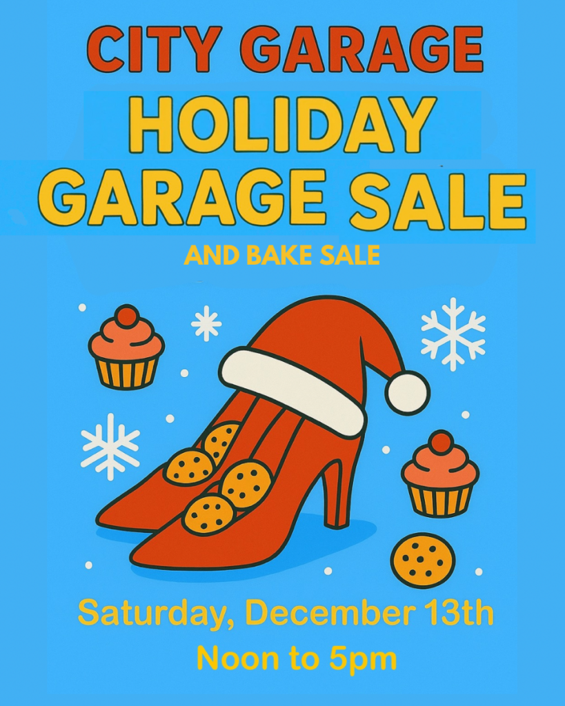 The City Garage Holiday Garage & Bake Sale, Saturday December 13, Noon to 5:00pm